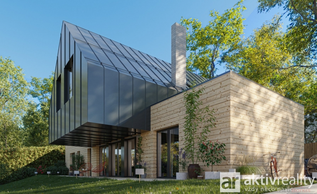 Projekt domu navrhl úspěšný architekt s důrazem na nadčasový vzhled, praktičnost a harmonické propojení interiéru s okolní přírodou.