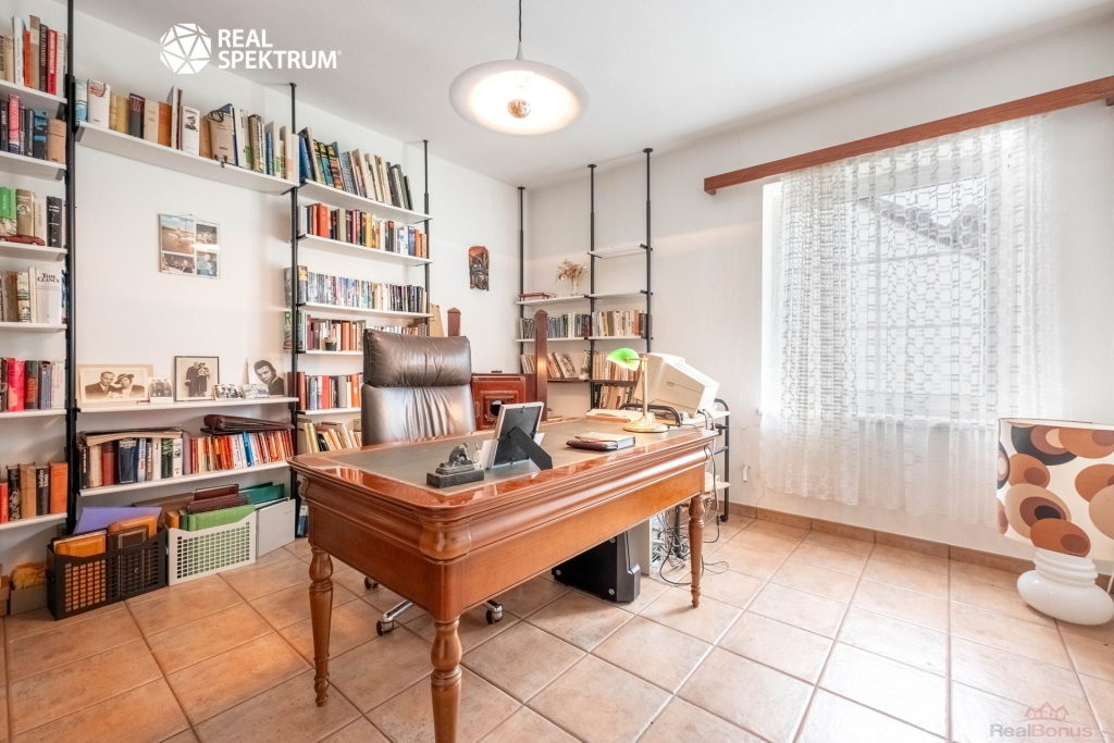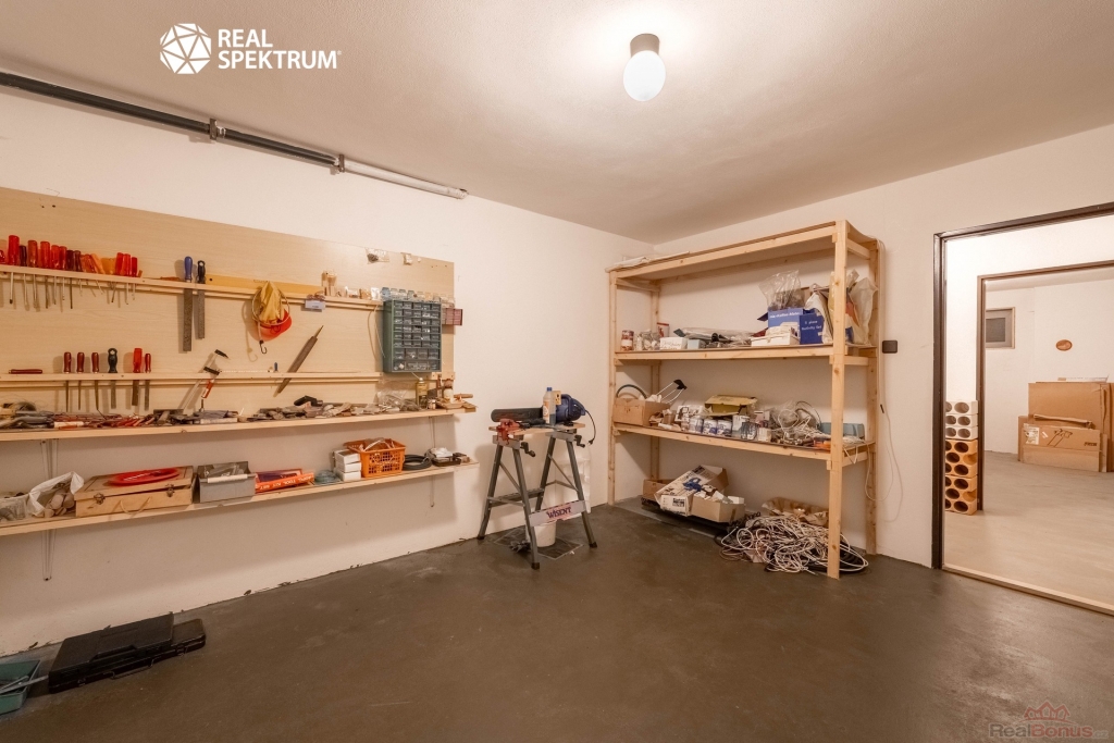 V suterénu se nachází společenská místnost s kulečníkem, posilovna a vinný sklep s posezením, což dodává domu další možnosti pro trávení volného času.