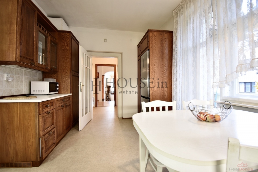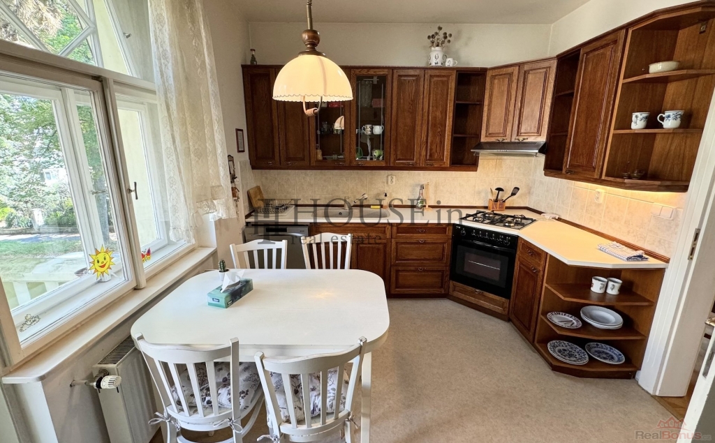 Kuchyňská linka je vybavena elektrickým sporákem s troubou, digestoří, lednicí s mrazákem a přípravou pro myčku. V obývací části je otevřený krb na dřevo, kterým lze pohodlně vytopit celé patro. V domě zůstává veškerý masivní nábytek, jak je uvedeno na fotografiích. Obrazy a osobní věci budou odstraněny.