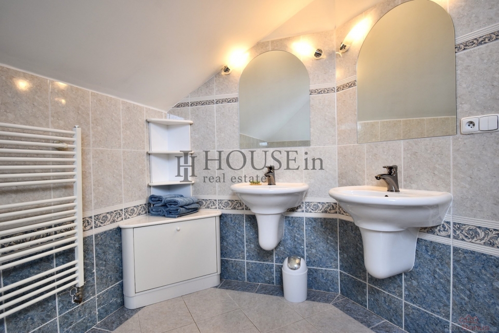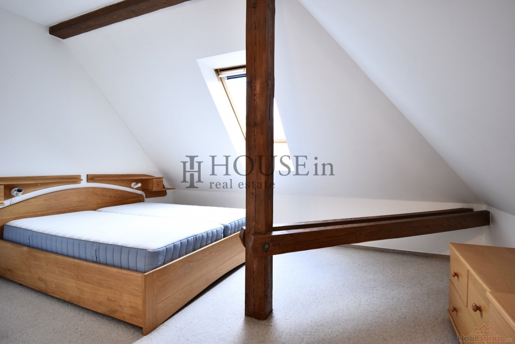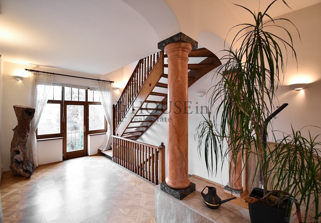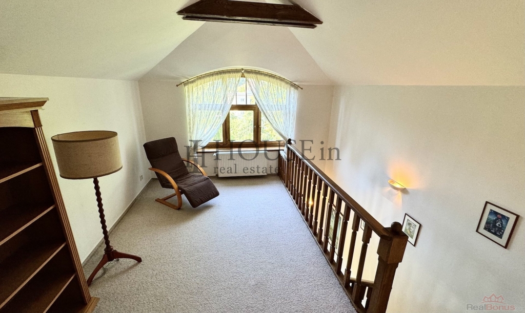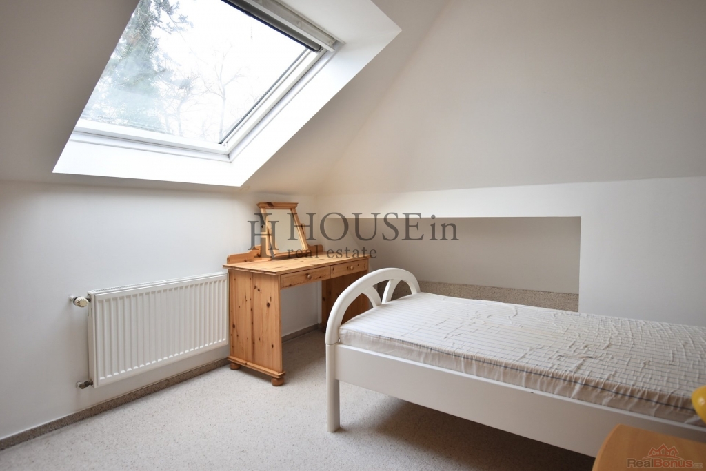 K pronájmu nabízíme kompletně vybavený, velmi pěkný rodinný dům o podlahové ploše 257,5 m2 s dispozicí 5+1, garáží pro dva automobily a zahradou o výměře 512 m2. Dům má dvě nadzemní podlaží, obytné podkroví a jedno podzemní podlaží. Nachází se v klidné vilové zástavbě v ulici Nad Havlem, Praha 4 ? Krč, jen pár minut chůze od vlakového nádraží Praha?Krč a zastávky autobusu Višňová.