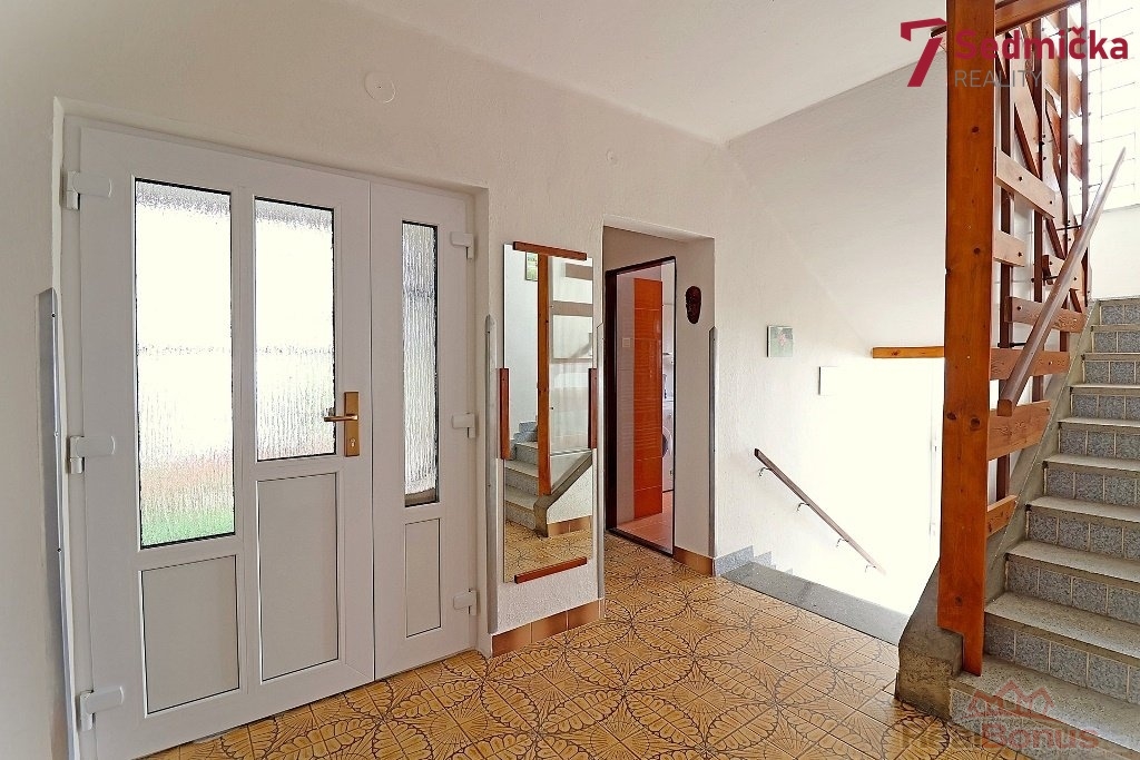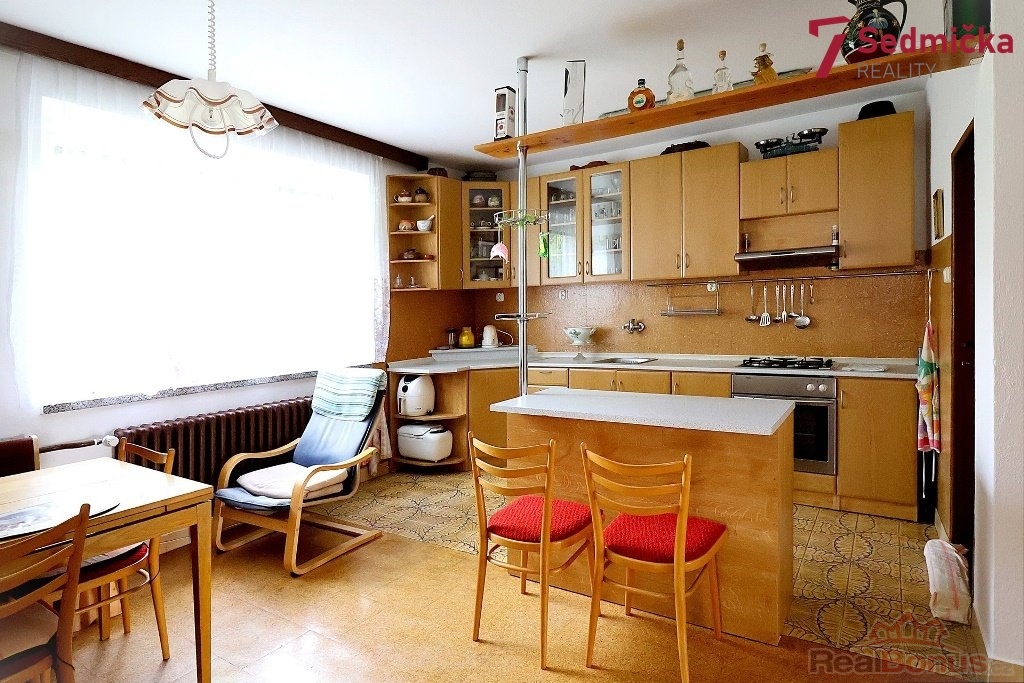 V přízemí domu je vstupní hala se schodištěm do prvního podlaží a na zahradu, kuchyň, velký pokoj s krbovými kamny, původně rozdělený příčkou na dva pokoje, dále koupena a WC.  V patře potom jsou tři prostorné pokoje, koupelna, WC a v prostoru u schodiště je sauna.  Na zahradě najdete sice starší, ale plně funkční zahradní domek.