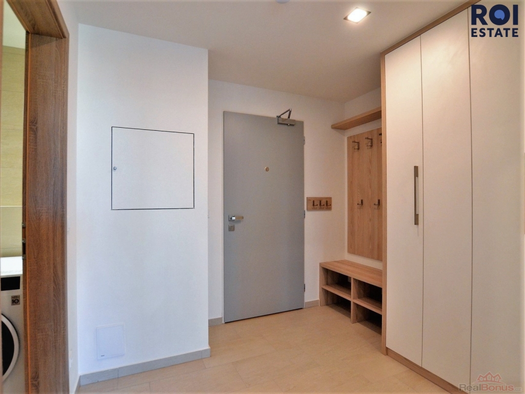Byt nabízí dva samostatné neprůchozí pokoje, praktické venkovní žaluzie a moderně vyřešenou kuchyňskou linku včetně všech potřebných spotřebičů jako je lednice, myčka či trouba v kombinaci se sporákem. Na chodbě se můžete těšit na velkou vestavěnou skříň a další úložný prostor Vám nabídne navíc prostorná šatna. V bytě je dále koupelna s vanou, pračkou a WC.  Jinak se byt nabízí nevybaven.