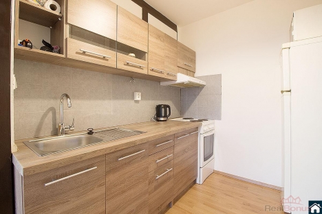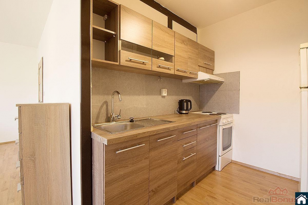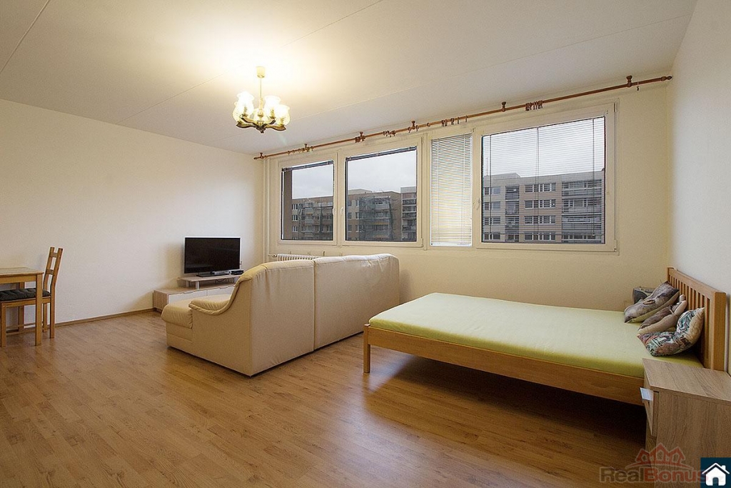 Velice slunný byt po úpravách v klidné lokalitě Chodova, bytová jednotka je koncipována jako 1+kk o velikosti 42m2 a je zařízena nábytkem a spotřebiči, nová platová okna se žaluziemi, na podlahách plovoucí podlaha a nové PVC, nová kuchyňská linka, elektrický sporák, lednice, mikrovlná trouba, pračka. Kožená sedačka, konferenční stolek , TV, jídelní stůl se dvěma židlemi, dvoulůžko a dva noční stolky. V předsíní nová šatní skříň a botník. Veškerá občanská vybavenost je kompletní, vše je v místě. Výborná dostupnost na Metro C.