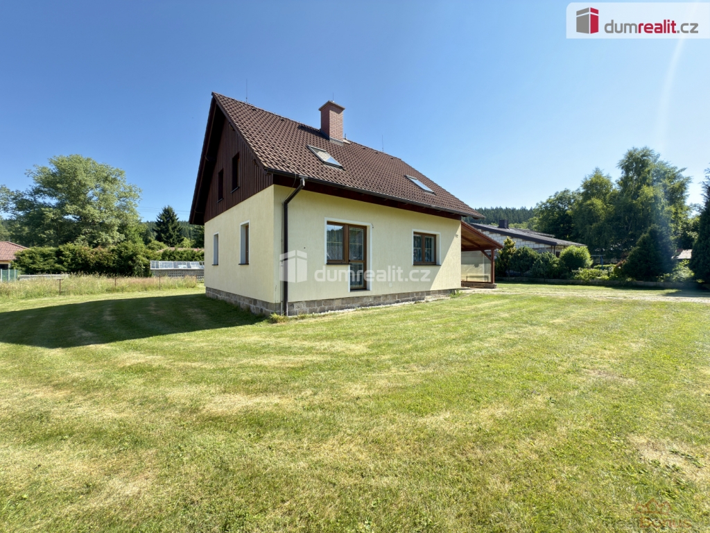 cena je kompletní, vč. právních služeb a odměny zprostředkovatele., Dumrealit.cz Vám zprostředkuje exkluzivně prodej tohoto krásného rodinného domu o dispozici 5+KK v krušnohorské obci Potůčky na Karlovarsku. Jedná se o patrový dům vystavěný ze systému Porotherm, obvodové zdivo 400 mm, zatepleno, fasádní okna plastová Hoco, střešní okna Velux. Střešní krytinu tvoří betonové tašky Bramac. Vytápění domu a ohřev vody zajišťuje centrálně plynový kotel se zásobníkem vody a také krb s možností vybudování rozvodů teplého vzduchu do ostatních částí domu. Stáří domu je cca. 20 let a je ve velmi udržovaném a skvělém stavu, bez nutnosti investic. Po dohodě, jako součást ceny, může být součástí prodeje vyobrazený nábytek a vybavení. V podkrovních místnostech jsou skříně na míru. Pozemek nabízí dostatek místa pro parkování, vč. krytého parkovacího stání (pergola) přímo u domu a také prostornou zahradu, která je na zcela rovinatém pozemku. Pro uskladnění čehokoliv může dále sloužit dřevěná kolna. V obci Potůčky je částečná občanská vybavenost, školka, škola 1. stupeň, pošta, nespočet restaurací a obchodů, fungující spolky hasičů a fotbalistů, kulturní a sportovní akce pořádané obcí, oblíbený lyžařský areál SKIPOT, nedaleký Plešivec, Klínovec a Boží Dar, nákupy v sousedním Německu, ale hlavně nádherná příroda v okolí s množstvím turistických tras a cyklotras, nová sportovní hala a nově budované (obnovené) přírodní koupaliště v lokalitě Pila. To vše dělá z tohoto prostředí skvělé místo nejen pro trvalé bydlení, ale také jako druhý domov, nebo zajímavou příležitost k investici s potenciálem výnosů z pronájmů. Dům je napojen na všechny inženýrské sítě (elektřina, plyn, obecní vodovod a kanalizace).