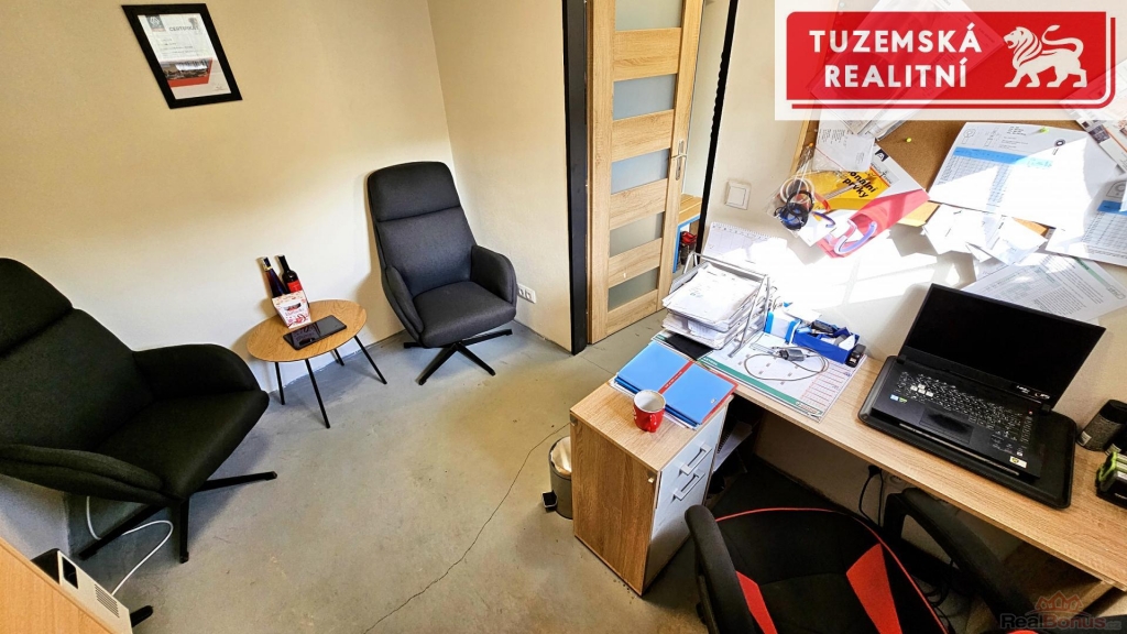 Prostor vznikl na základě skvělého nápadu propojení sedmi garáží plus jedna garáž naproti. Vznikly 2 dílny, 4 sklady, kancelář, kuchyňka se šatnou, WC a sprcha. Majitel zde v roce 2021 rozjel soustružnickou dílnu a kovoobrábění, a protože roste, kupuje přes naši realitní kancelář mnohem větší objekt. Je důkazem, že se zde dá skvěle začít.