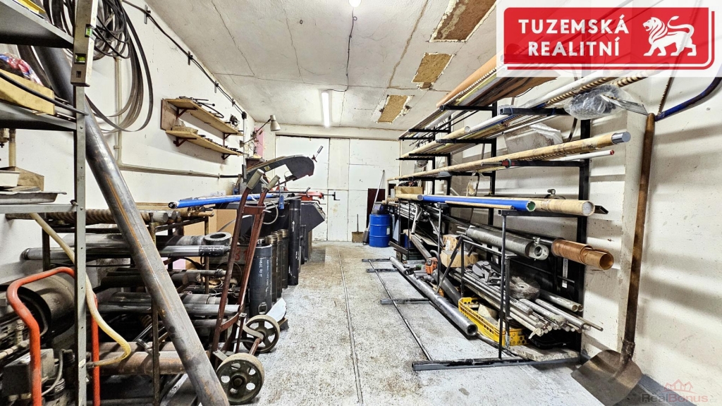 Prostor vznikl na základě skvělého nápadu propojení sedmi garáží plus jedna garáž naproti. Vznikly 2 dílny, 4 sklady, kancelář, kuchyňka se šatnou, WC a sprcha. Majitel zde v roce 2021 rozjel soustružnickou dílnu a kovoobrábění, a protože roste, kupuje přes naši realitní kancelář mnohem větší objekt. Je důkazem, že se zde dá skvěle začít.