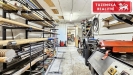 Hlavní dílna 56,71m2, vedlejší dílna 18,3m2, první sklad 17,97m2, druhý sklad 9,1m2, třetí sklad 8,95m2, čtvrtý sklad (samostatný naproti) 17,15m2, kuchyňka se šatnou 8,04m2, kancelář 6,48m2, sprchový kout 1,39m2, WC 0,84m2.