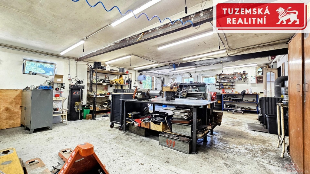 Prostor vznikl na základě skvělého nápadu propojení sedmi garáží plus jedna garáž naproti. Vznikly 2 dílny, 4 sklady, kancelář, kuchyňka se šatnou, WC a sprcha. Majitel zde v roce 2021 rozjel soustružnickou dílnu a kovoobrábění, a protože roste, kupuje přes naši realitní kancelář mnohem větší objekt. Je důkazem, že se zde dá skvěle začít.