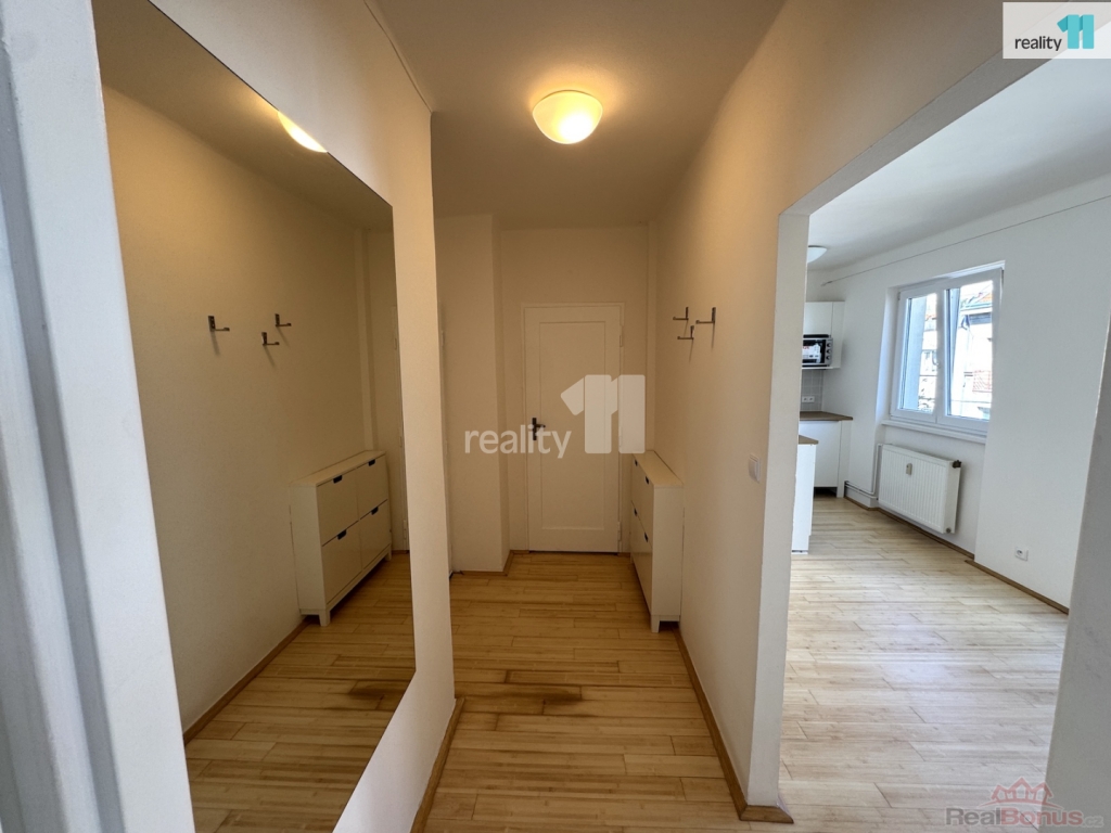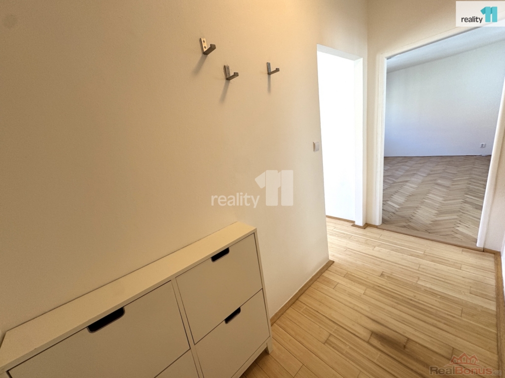 Byt o obytné ploše 48,8 m nyní prošel renovací a bude pronajímán nezařízený. Dispozičně je rozdělen na vstupní chodbu, koupelnu se sprchovým koutem a toaletou, kuchyni s novou kuchyňskou linkou (varná deska, mikrovlnná trouba, prostor pro pračku) a vstupem na krásnou, slunnou terasu. Dále je zde velký obytný pokoj, do kterého se pohodlně vejde postel, šatní skříň i pohovka. Na podlahách zrenovované parkety, dřevo a dlažba, plastová okna, moderní obklady v koupelně.