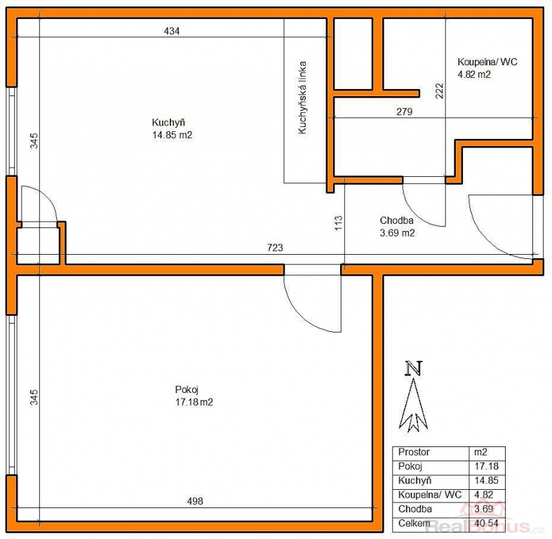 Plocha bytu: podle dokumentace 42,6 m2 včetně sklepní kóje o výměře 1,4 m2.