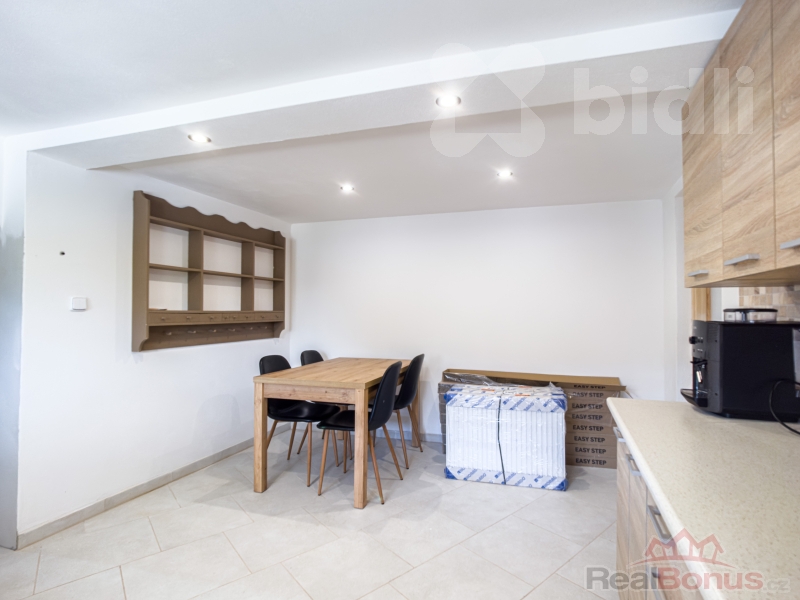 | Popis vybavení | Kuchyňská linka, sporák, stůl, židle |