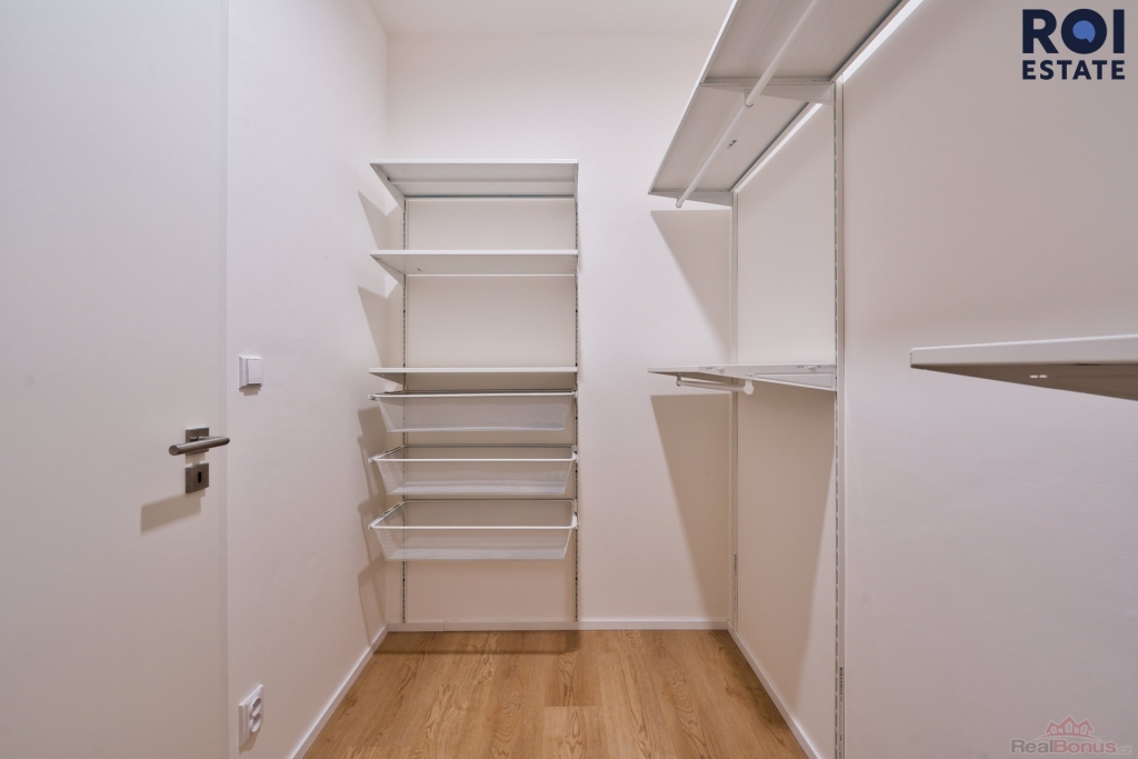 Balkon / terasa / komora: prostorná terasa přístupná z?obývacího pokoje i ložnice; k bytu náleží šatna/komora v bytě, sklep ani garáž nejsou k dispozici. Parkování je možné po domluvě.