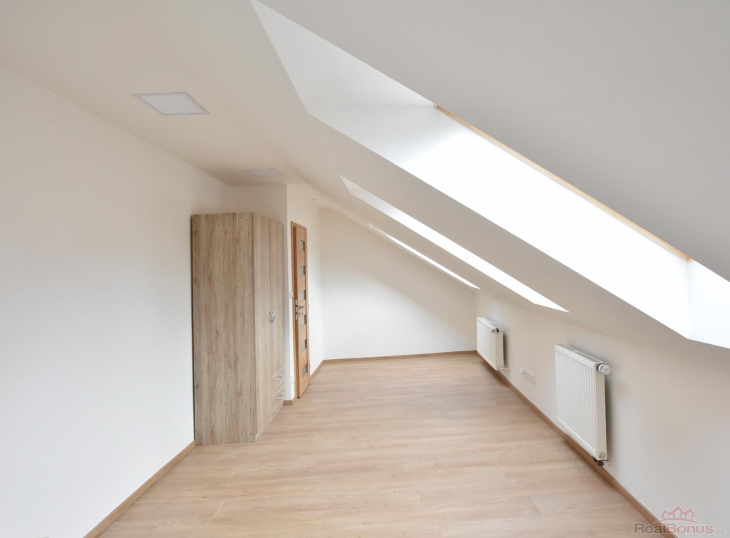 Podkroví (42 m2) - 3x ložnice (20 m2, 13 m2, 9 m2) z chodby je vstup na terasu (18 m2)