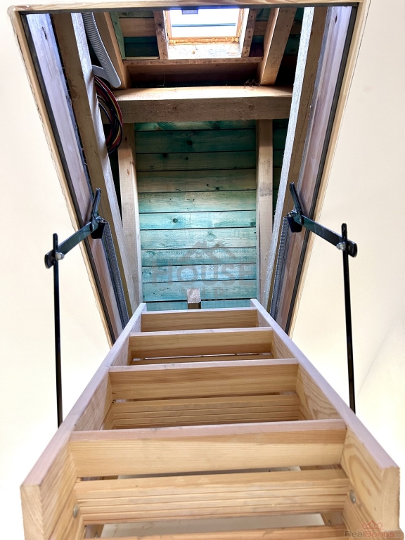 - technická místnost, vstupní hala s dřevěným schodištěm.