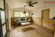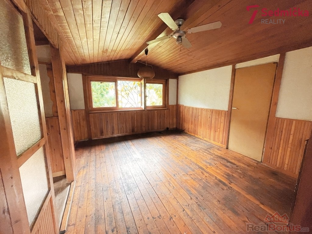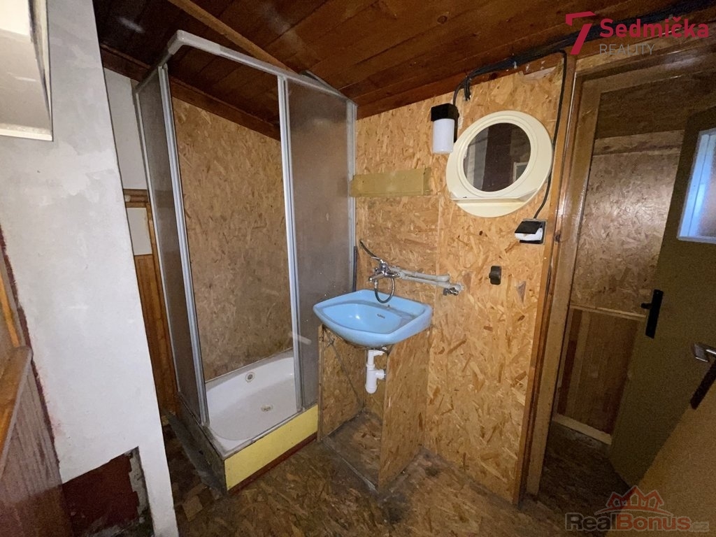 Samotná chata o velikosti 49 m2 je řešena vstupem přes verandu a bezpečnostní dveře do zádveří s vestavěnou skříní. Hlavní obytný prostor je rozdělen na část s možností umístění kuchyňské linky a ústřední kamna, která tvoří dominantu interiéru. Součástí je koupelna se sprchovým koutem, samostatná toaleta a menší oddělený pokoj. V interiéru jsou palubky a již zavedené rozvody elektřiny i vody, takže objekt je obyvatelný bez nutnosti velkých zásahů, vyžaduje spíše kosmetické úpravy podle náročnosti nového majitele.