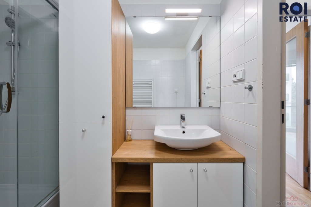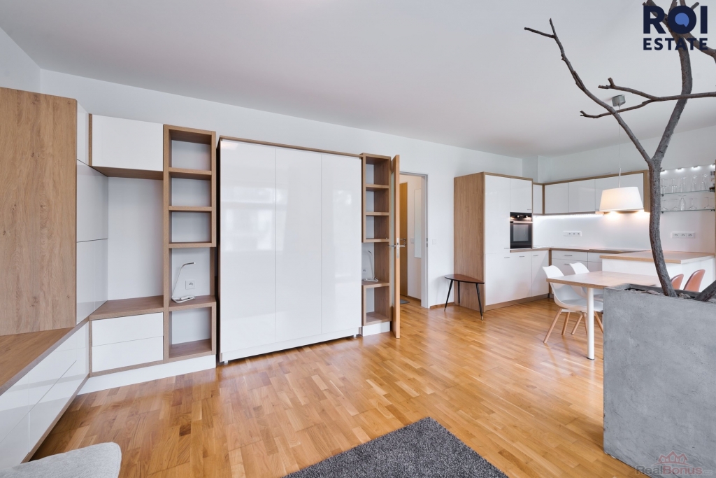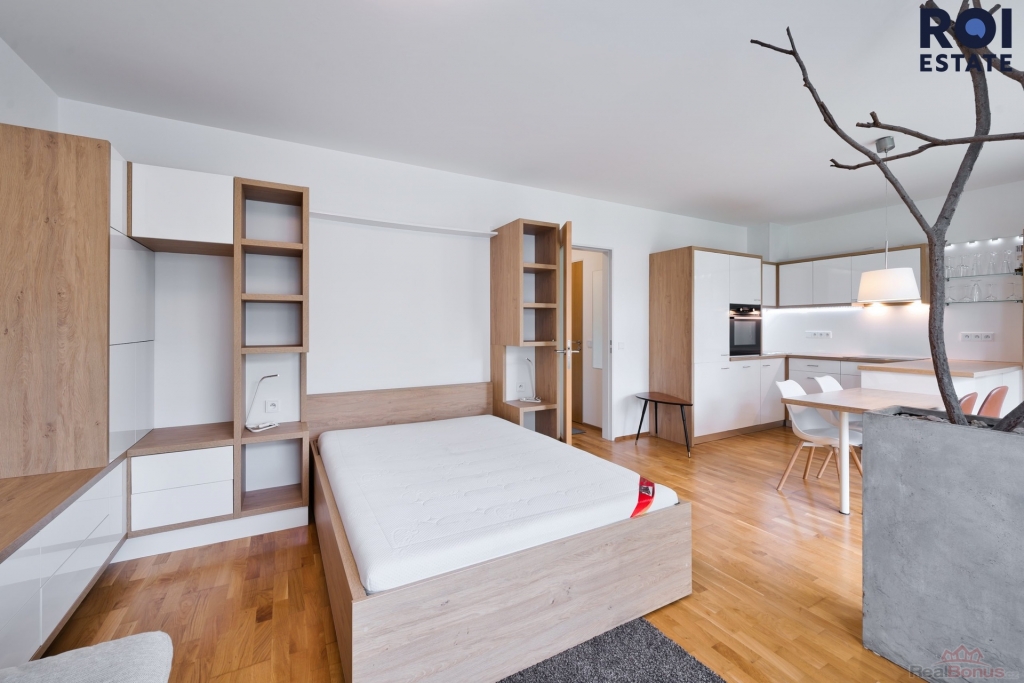 Byt se nachází v moderním domě a působí vzdušně, svěže a je kompletně zařízený. Obytný prostor se snadno přizpůsobí vašemu stylu života ? ať už toužíte po útulném koutku na odpočinek nebo praktickém zázemí pro pracovní dny. Kuchyňský kout navazuje na pokoj a vede přímo na prostorný balkon, kde si můžete vychutnat ranní kávu, večerní víno nebo jen chvilku klidu nad střechami města.