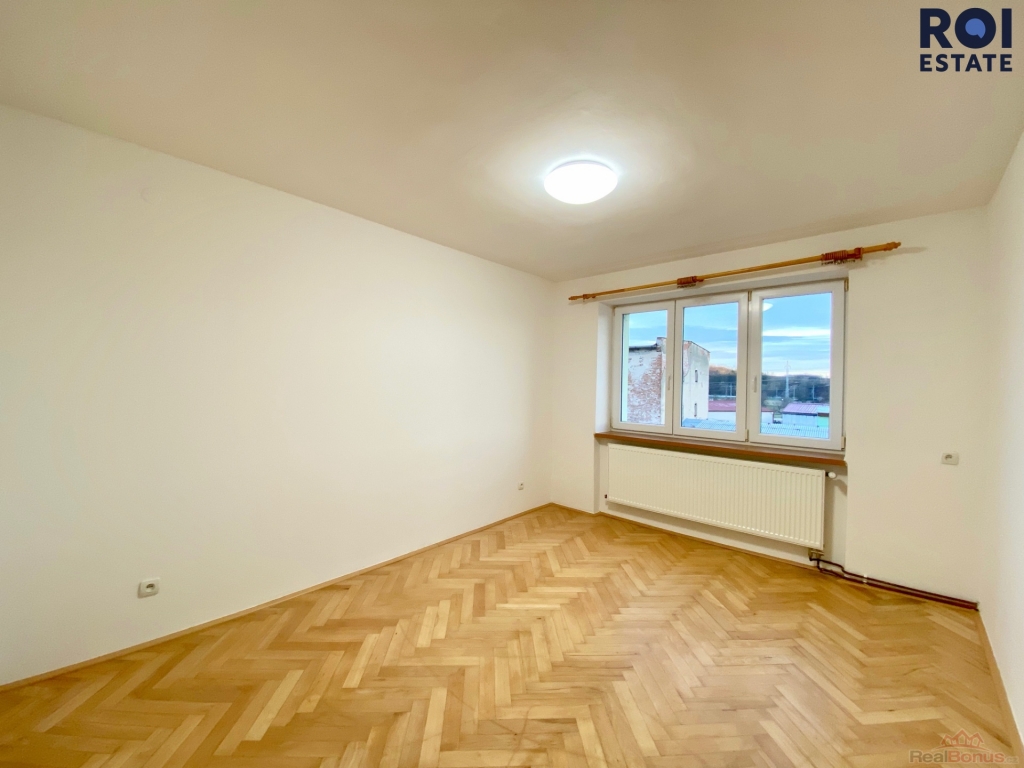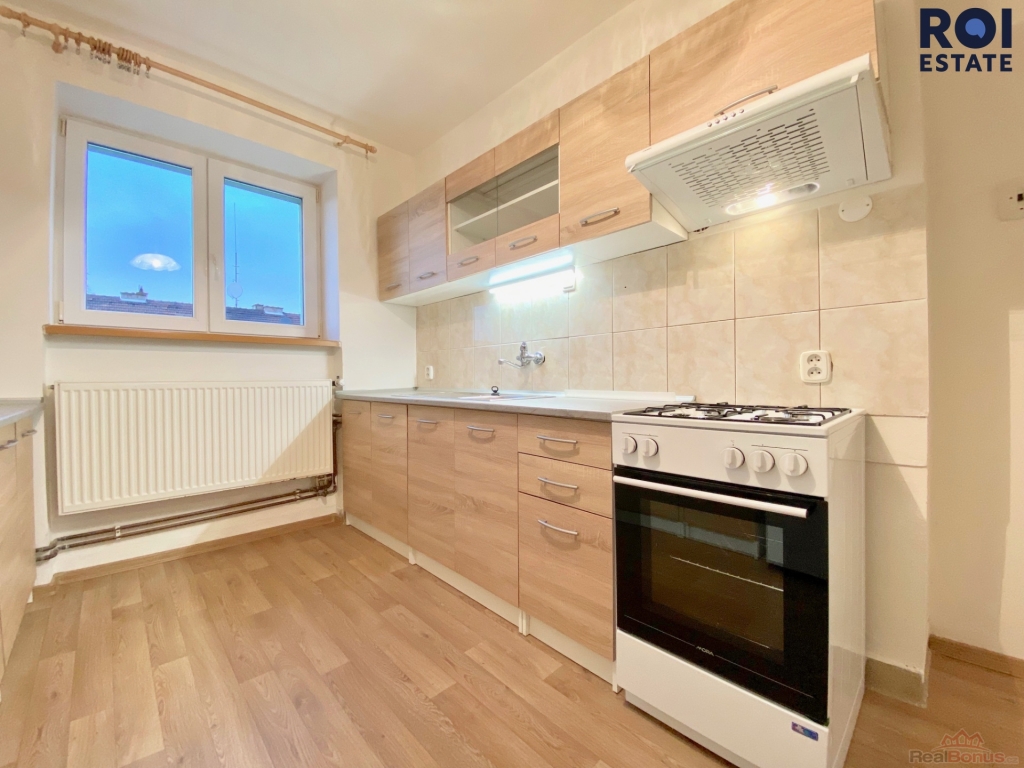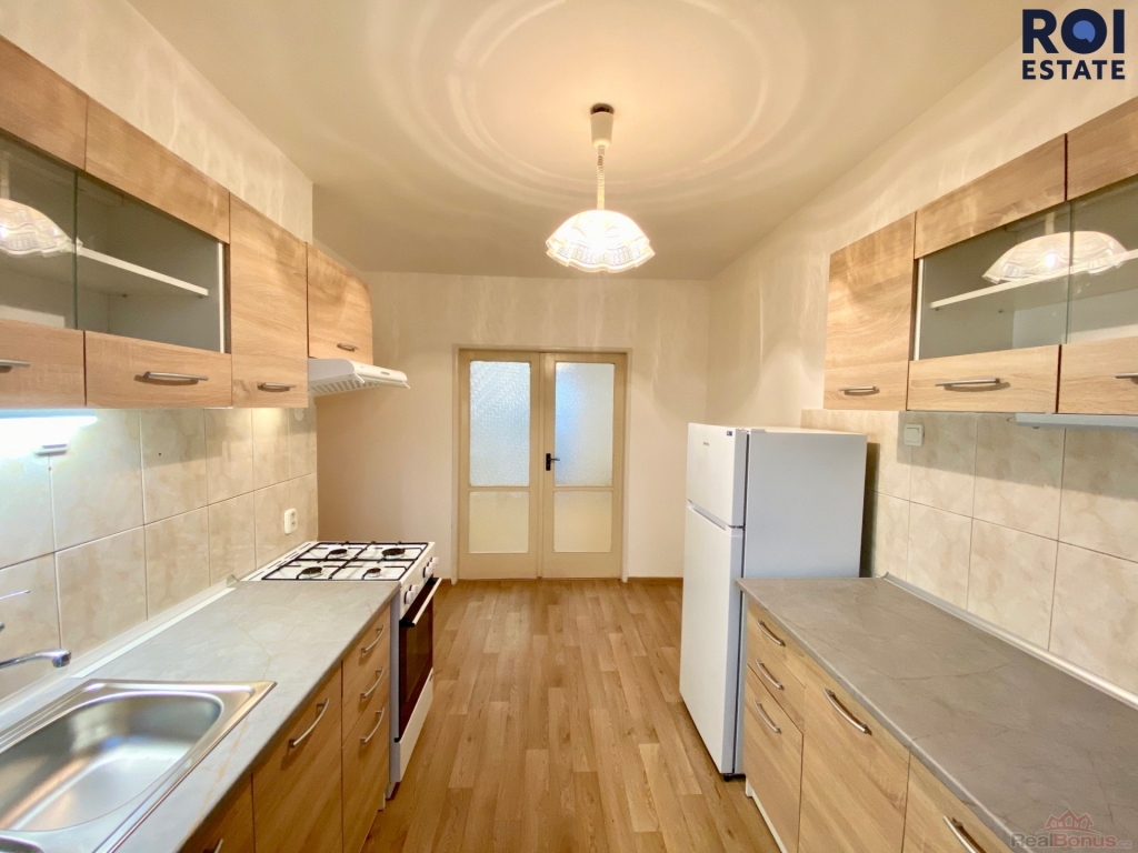 Po příchodu do bytu se objevíme na chodbě, kde se nachází komoda se zrcadlem, která je prázdná a připravená pro Vaše věci. Po naší pravici spatříme dvoje dveře, jedny vedoucí k samostatné toaletě a druhé k prostorné koupelně s velikou vanou, ve které můžete po náročném dni relaxovat, například při svíčkách se sklenkou dobrého vína. Nalevo se nachází jeden ze dvou samostatných pokojů, který je kompletně nevybaven a vy si jej můžete dovybavit dle Vašich představ a přání. Druhý pokoj je spojený dveřmi a nachází se hned vedle, tento pokoj má jednu velikou výhodu a tou je krásný prostorný balkon, ze kterého je na něj přístup. Pokud chodbou budeme pokračovat dále do bytu dojdeme do kuchyně, která je samostatná, velice prostorná a šikovně oboustranně řešená. Je také vybavena nově instalovanou kuchyňskou linkou i novou ledničkou.