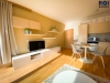Byt nabízí prostorný obývací pokoj s kuchyňským koutem, kde vám jsou k dispozici veškeré kuchyňské spotřebiče.