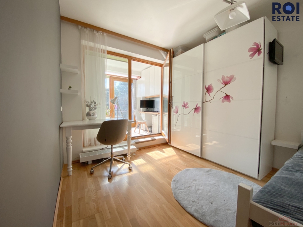 Dále ložnici, která aktuálně slouží jako dětský pokoj (nábytek zde nezůstane) a šatnu pro všechno vaše oblečení.