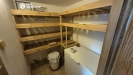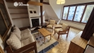 Interiér tvoří obývací část s kuchyňskou linkou a spotřebiči (sporák, trouba, digestoř, mikrovlnná trouba, myčka a lednice), jídelní stůl se židlemi a příjemné posezení u krbu s krásným výhledem do zahrady.
