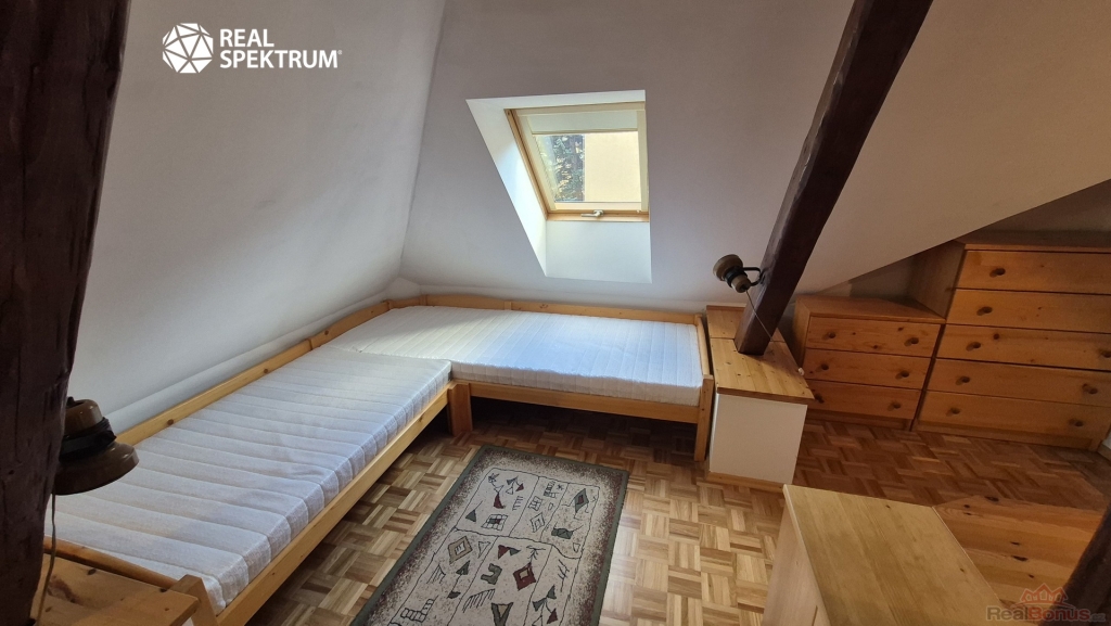První ložnice nabízí pracovní stoly, postele a dostatek úložného prostoru, druhá ložnice je umístěna na otevřené galerii v horním patře a je vybavena manželskou postelí a úložnými prostory.