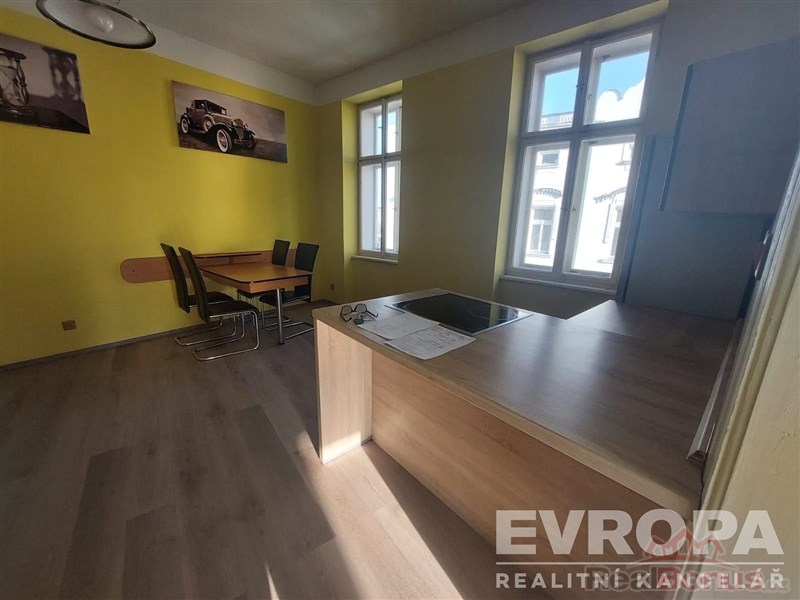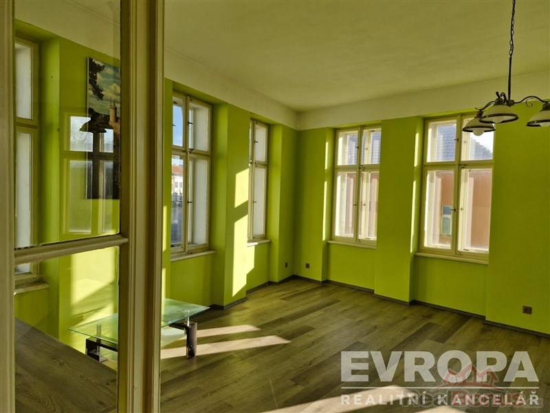 Exkluzivně nabízíme pronájem bytu o velikosti 53 m2 v 1. patře secesního domu v Mělnické ulici v centru Mšena. Do bytu se vchází dvoukřídlými secesními dveřmi do obývací kuchyně. Zde je skříňka s jističi a elektroměr, elektrický vrátný s displejem, termostat, který ovládá 2 infra topné panely v podobě obrazů, kachlová kamna, vestavná kuchyně z kuchyňského studia Dušek se zabudovanými spotřebiči Whirpool ( sklokeramická deska, trouba, mikrovlnná trouba obě trouby jdou ovládat přes případnou Wifi na dálku ). Pod dřezem je zabudovaný koš na tříděný odpad. Za ním je vodoměr bytu a uzávěr vody bytu. Skříňky kuchyně mají kvalitní kování s brzdami. Některé vrchní dvířky kuchyně jsou výklopné. V kuchyni je na zakázku vyrobený stolek, 4 koženkové židle, konferenční stolek, 2 špaletové okna s izolačními trojskly do Husovy ulice. Na podlaze obývací kuchyně a pokoje je vinylová podlaha. V bytě je nadbytek dřevěných zásuvek, aby nájemce nepoužíval nebezpečné rozdvojky a prodlužovačky. Z obývací kuchyně se dvoukřídlými prosklenými secesními dřevěnými dveřmi dostanete do velkého pokoje. Zde je po pravé straně koupelna s WC. Do této místnosti vstupujete posuvnými dřevěnými zabudovanými dveřmi. Zde je zprava WC Jika Lyra plus, nad ním je bojler Dražice, malá skříňka se zabudovaným umyvadlem, skříňka se zrcadlem, pračka, sprchový kout Huppe se sprchovou a umyvadlovou baterií Grohe a topným žebříkem ovládaným termostatem. V pokoji je termostat, který ovládá také 2 topné panely v podobě hradu Kokořína a Karlštejna. V pokoji je zánovní manželská postel s nočními stolky, komoda. Pokoj je krásně světlý rohový se 7 špaletovými okny směrem do Husovy a Mělnické ulice.