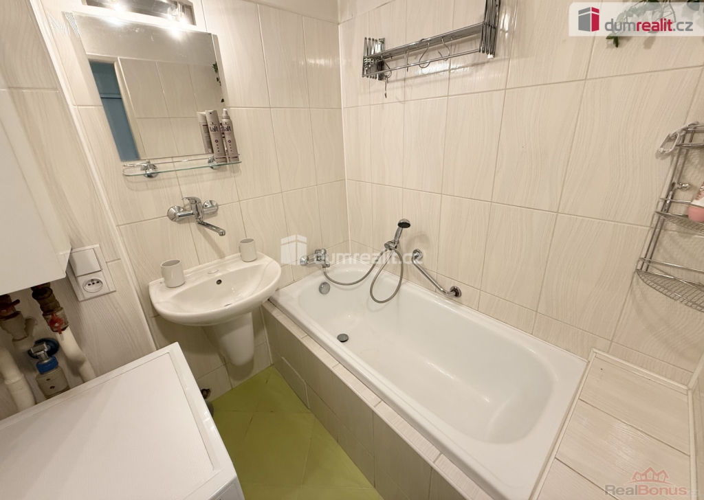 Výhodou je samostatné WC a koupelna s vanou a místem pro pračku.