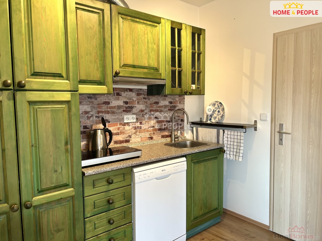 Interiér je řešen velmi prakticky a nabízí komfortní bydlení. Kuchyňský kout je vybaven myčkou, lednicí, digestoří a dvouplotýnkovým indukčním vařičem. V koupelně se sprchovým koutem je umístěna pračka, toaleta je oddělená. K bytu náleží také balkón o velikosti 5 m, odkud je krásný výhled na město a okolí. O teplo domova se stará podlahové vytápění napojené na plynový kotel. Budova má energetický štítek třídy D.