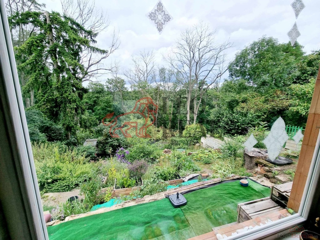 Obytná část domu a plánovaná terasa je situována na J a Z, vstup do domu je ze západní části, kde je orientována terasová zahrada s ovocnými a okrasnými keři, bylinkovou a zeleninovou částí, s výhledem do zalesněného údolí bez dalších staveb. Na spodní části zahrady je separační toaleta a jednoduché vybavení stavby slouží jako provizorní zázemí pro práce na zahradě a v domě. Součástí zahrady je nová terasa s dřevěnou finskou saunou na dřevo.