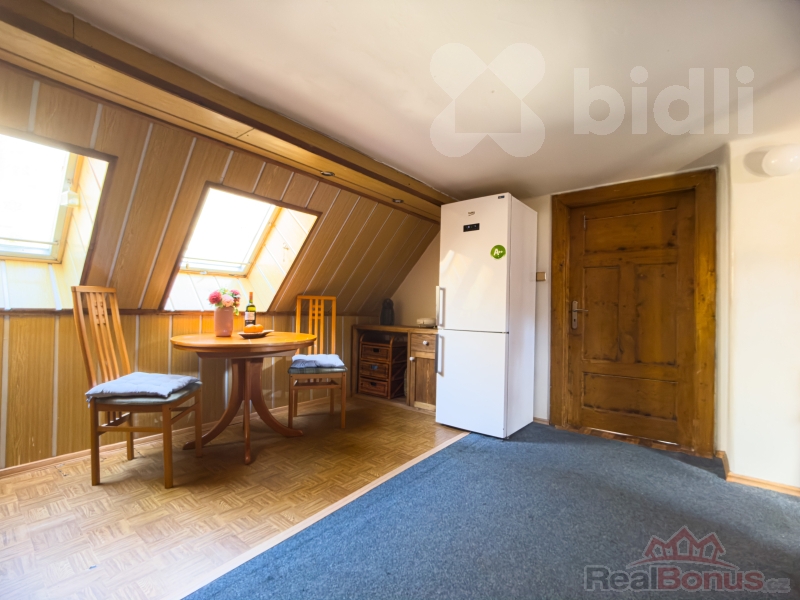 Dům nabízí 3 bytové jednotky, 2x 1kk a 1x 3kk, nebytový prostor 2+1, zahradní dům.