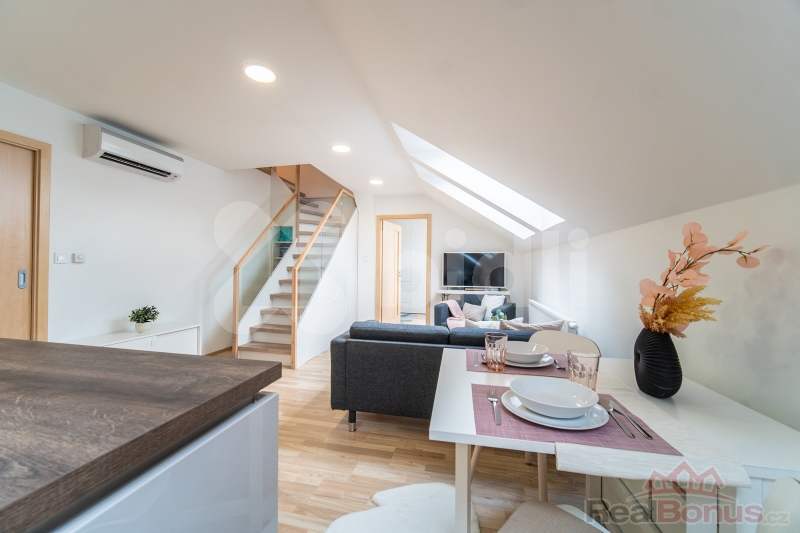 Byt je kompletně zrekonstruován, takže Vám nabízí moderní a vkusný interiér, ve kterém se budete cítit jako doma. V bytové jednotce jsou velmi dobře řešeny úložné prostory. Výhodou je také výtah v budově, který Vám usnadní každodenní pohyb a snadný přístup do Vašeho nového domova. Kromě toho je byt vybaven klimatizací, která Vám poskytne příjemné a komfortní prostředí během teplých letních dní.