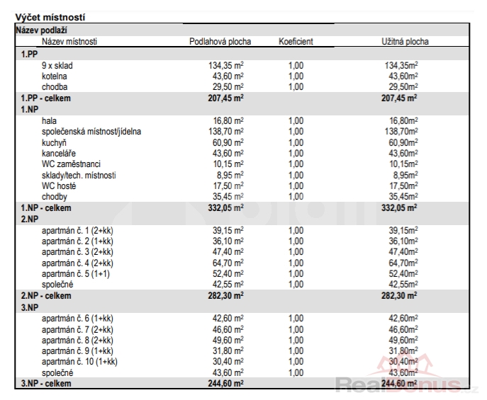 | Užitná plocha v přízemí | 332 m² |