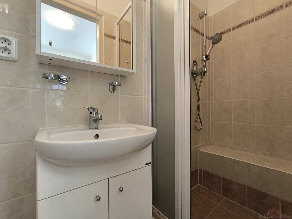 Dispozice: předsíň 3,9 m2 , koupelna se sprchovým koutem 1,8 m2, WC s umyvadlem 1,7 m2, obývací pokoj 22,1 m2, pokoj 8,0 m2