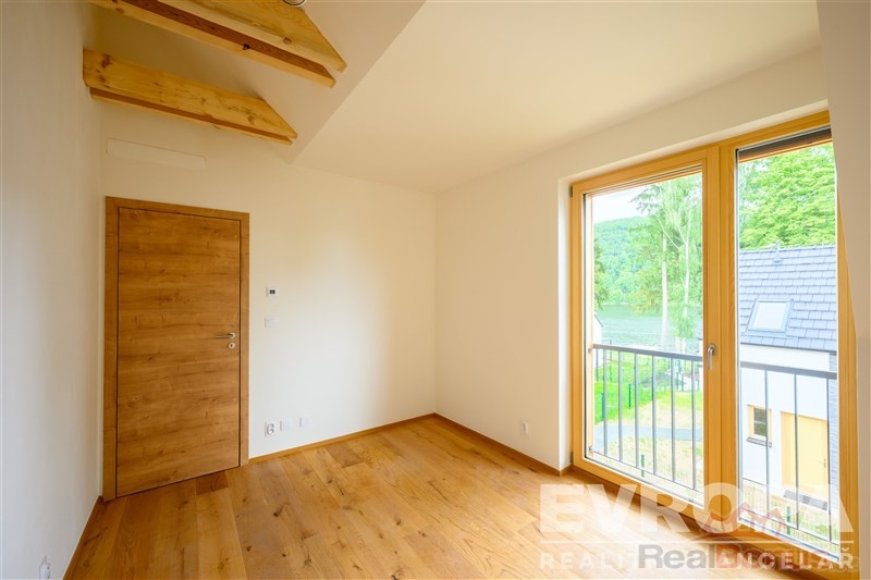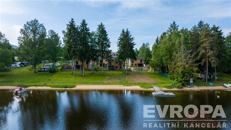 Nabízíme k prodeji dům (112,8 m2) s pozemkem (373 m2) v luxusním Lakeside Resortu Slapy. Tento exklusivní resort na Nové Živohošti je uzavřená privátní zóna s vyhřívaným bazénem a dostatkem parkovacích stání včetně dobíjení elektromobilů. Od tohoto domu je to pouhých padesát metrů k vyhřívanému bazénu a dalších 50 metrů je to přímo přímo na pláž Slapské přehrady. Dům se v prvním patře skládá z předsíně, samostatného WC, šatny, technické místnosti a prostorného obývacího pokoje s kuchyňským koutem. V druhém patře jsou tři ložnice a koupelna s wc.