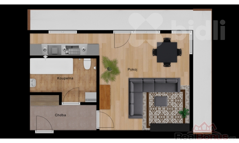 | Dispozice bytu | 1+kk |