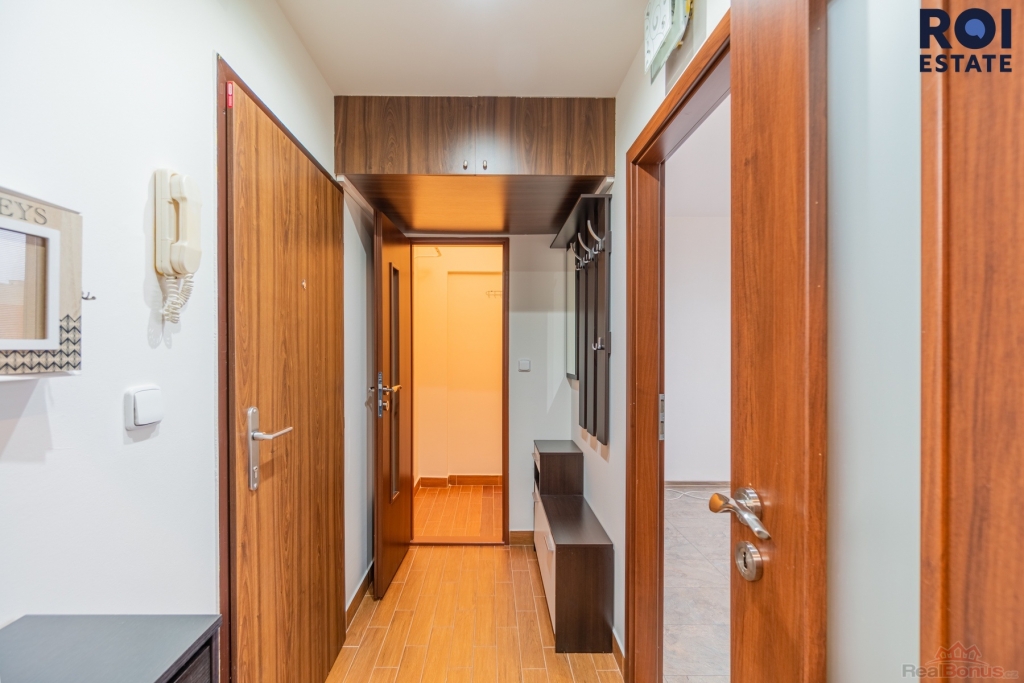 Byt je po kompletní rekonstrukci a disponuje chodbou, uzavřenou šatnou, koupelnou se sprchovým koutem či prostorným a slunným obývacím pokojem. Odsud je přístup do ložnice, která je vybavena komodou a šatní skříní nebo do kuchyně s rohovou kuchyňskou linkou, do které je vsazena pračka a myčka na nádobí. Kuchyně je samozřejmě vybavena kombinovanou lednicí s mrazákem.