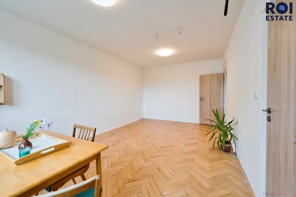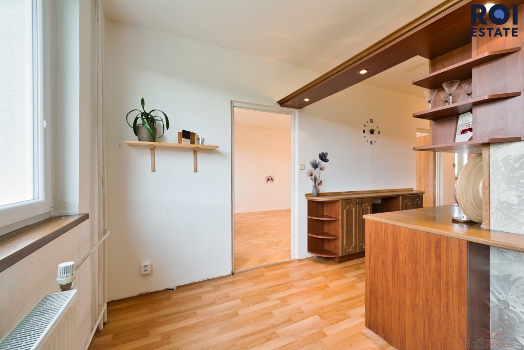 - tři samostatné pokoje, z nichž jeden je výrazně větší a díky dvojím dveřím umožňuje úpravu na dva oddělené pokoje (možná úprava dispozice na 4+1),