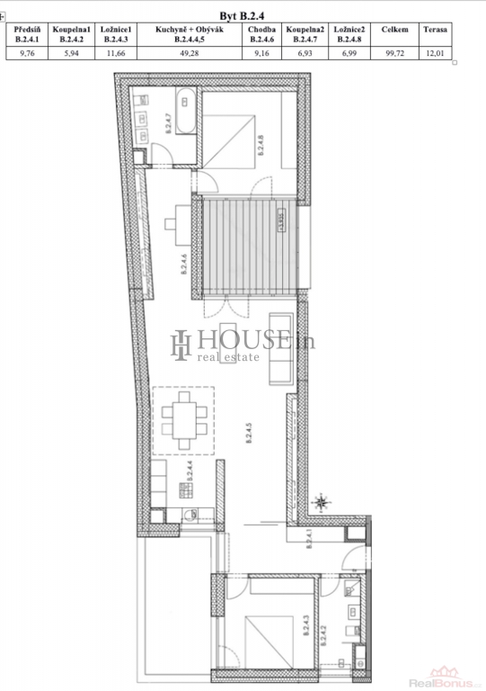 ? Obývací pokoj s kuchyňským koutem (49,28 m2) se vstupem na terasu