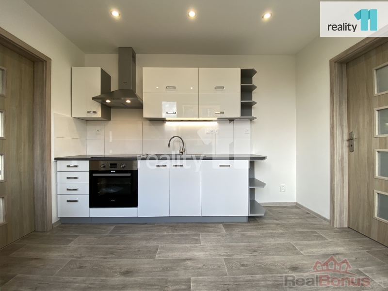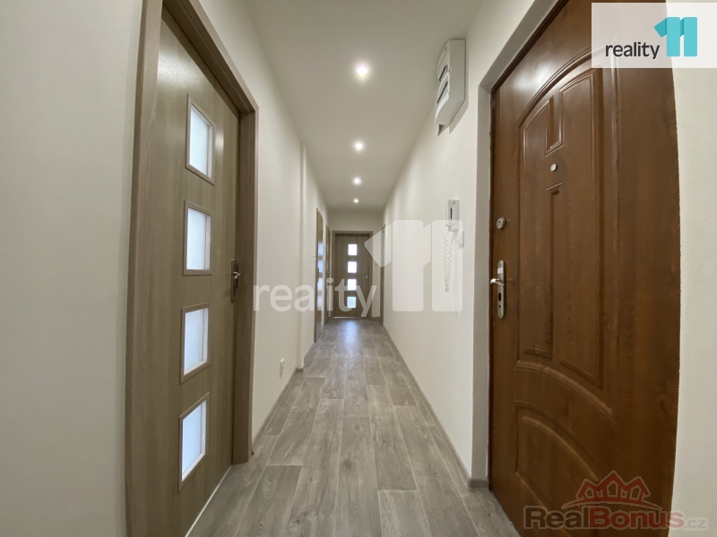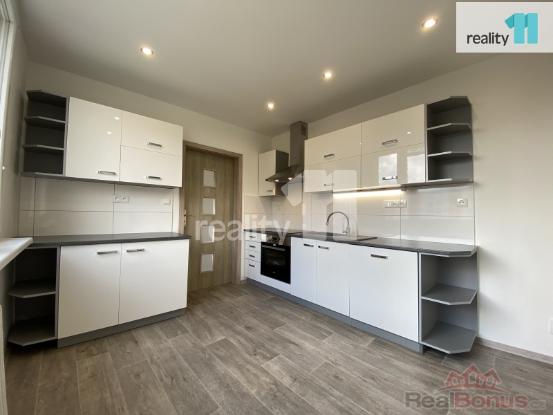 Dispozice bytu: prostorná chodba s šatnou, velká koupelna se sprchovým koutem a vanou, kuchyň s moderní kuchyňskou linkou v bílém lesku- vybavena spotřebiči (vestavěný sporák, sklokeramická deska, digestoř, myčka), obývací pokoj, ložnice s lodžií, dětský pokoj. Příjemné prostředí v bytě vytvářejí snížené stropy s bodovými světly. Po celém bytě nové kvalitní PVC ve stejném dekoru, moderní dveře.