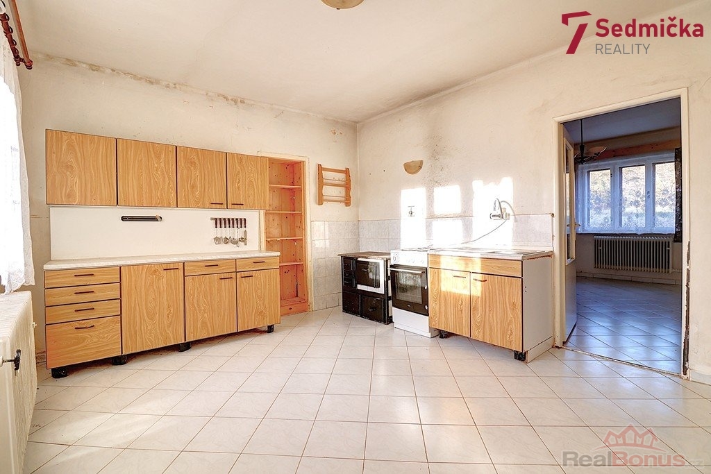 Obytnou část bytu tvoří byt 3+1 tvořený vstupní verandou s WC, chodbou, kuchyní, třemi pokoji, koupelnou a špajzkou. Byt je vytápěný radiátory s kotlem na TP. Na obytnou část domu navazuje průjezdná stodola se sklady (bávalé chlévy) a garáží. Na konci domu vedle garáža je vybudovaný kuník s výběhem pro chov slepic. Zahrada kolem domu má trojúhelníkový tvar a svojí rozlohou a členitostí může nabídnout také hodně prostoru například k dětským hrám. Z pozemku kolem domu je hezký výhled na lesy a panorama Železných hor - velmi pěkné a klidné místo.