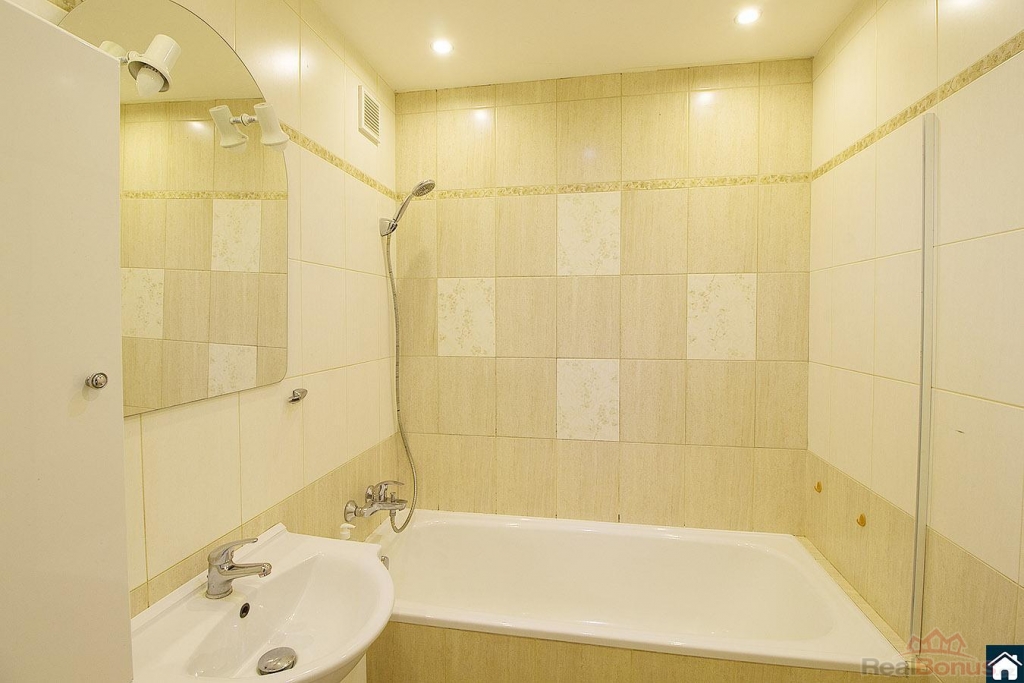 Kuchyně je zařízena kuchyňskou linkou se sporákem s keramickou deskou a jídelním stolem se židlemi. Koupelna je vybavena vanou a WC je samostatné. V bytě je také šatní skříň. Okna jsou situována z kuchyně a obývacího pokoje na východ (lodžie) a obě ložnice na západ. K bytu náleží velký sklep.