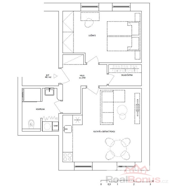 Byt se nachází v 1. patře zděného domu a prošel kompletní rekonstrukcí. Dispozičně je řešen velmi prakticky obývací pokoj s kuchyňským koutem, samostatná ložnice, koupelna, šatna a chodba. K bytu náleží také komora na společné chodbě a velká půda přímo nad bytem.