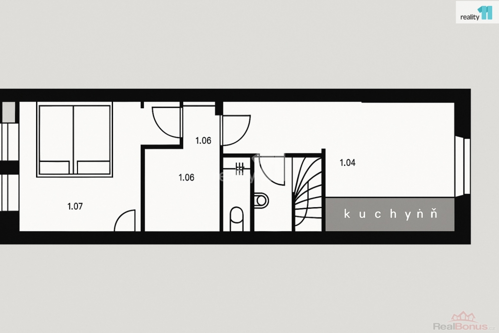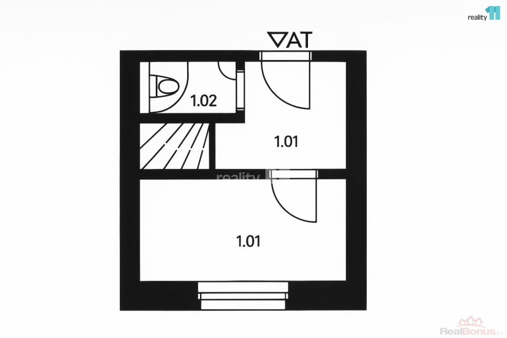 spodní patro: vstup , WC + umyvadlo a jedna místnost
