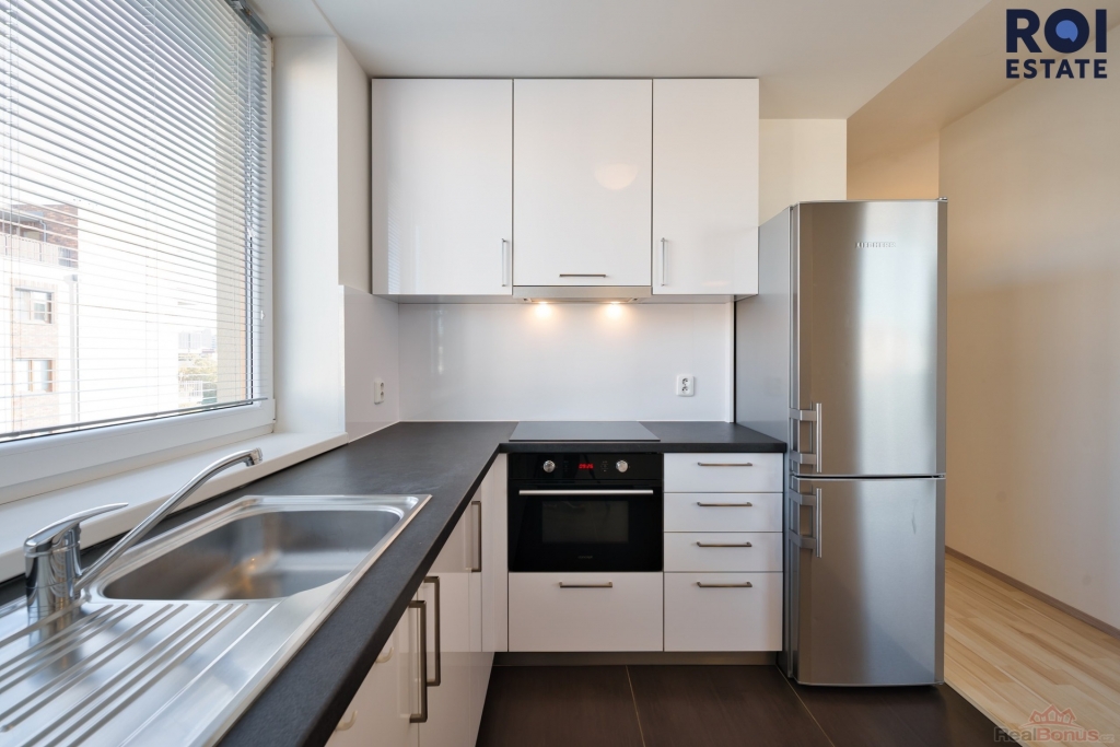K pronájmu nabízíme moderní byt 2+kk s balkonem, sklepem a garážovým parkovacím stáním, který se nachází v 5. patře novostavby s výtahem v oblíbené brněnské lokalitě Leskava.