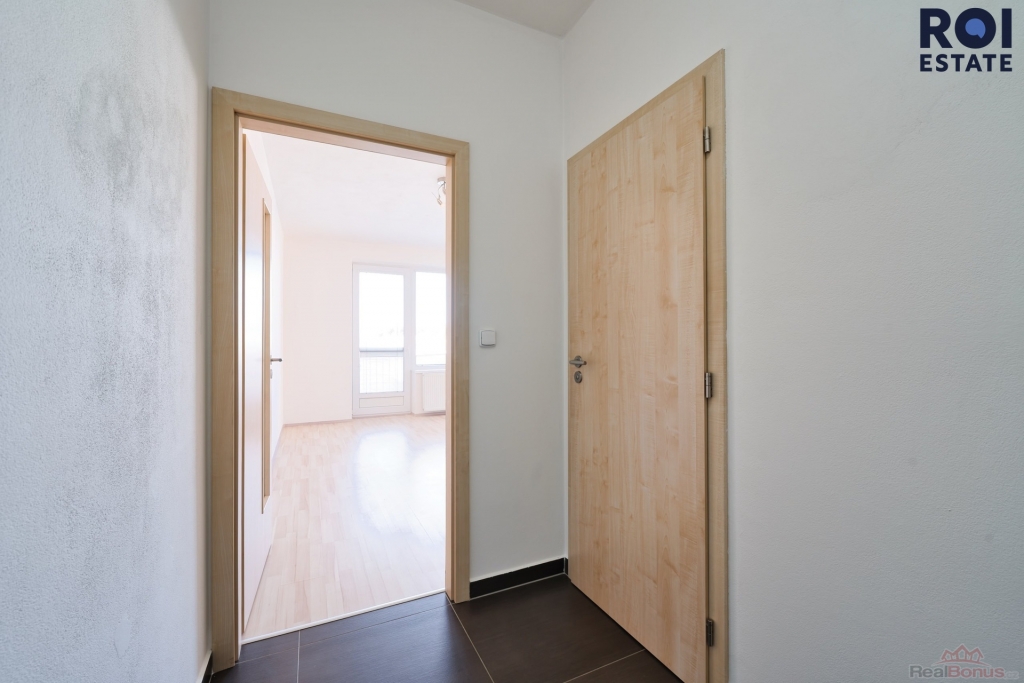 Byt o velikosti 49 m2 s balkonem 4 m2 působí velmi světlým a čistým dojmem. Obývací pokoj je propojený s moderní kuchyní ve vysokém lesku, která je vybavena vestavěnými spotřebiči včetně myčky, varné desky, trouby a lednice s mrazákem. Z obývací části je vstup na balkon s příjemným výhledem do okolí.