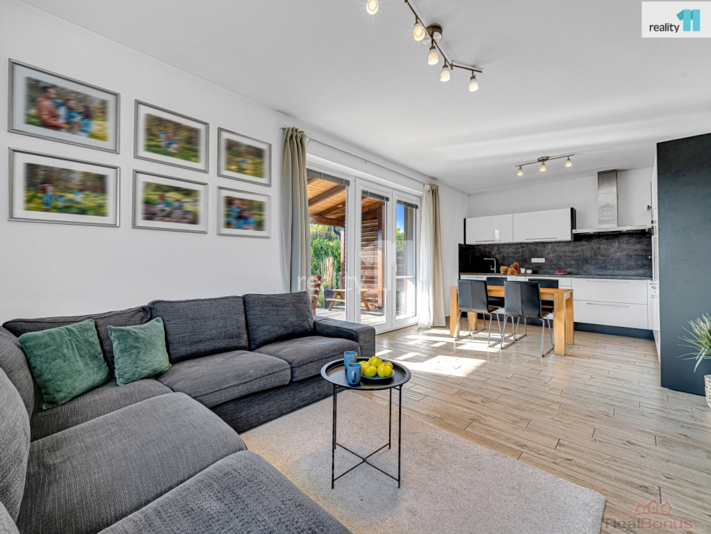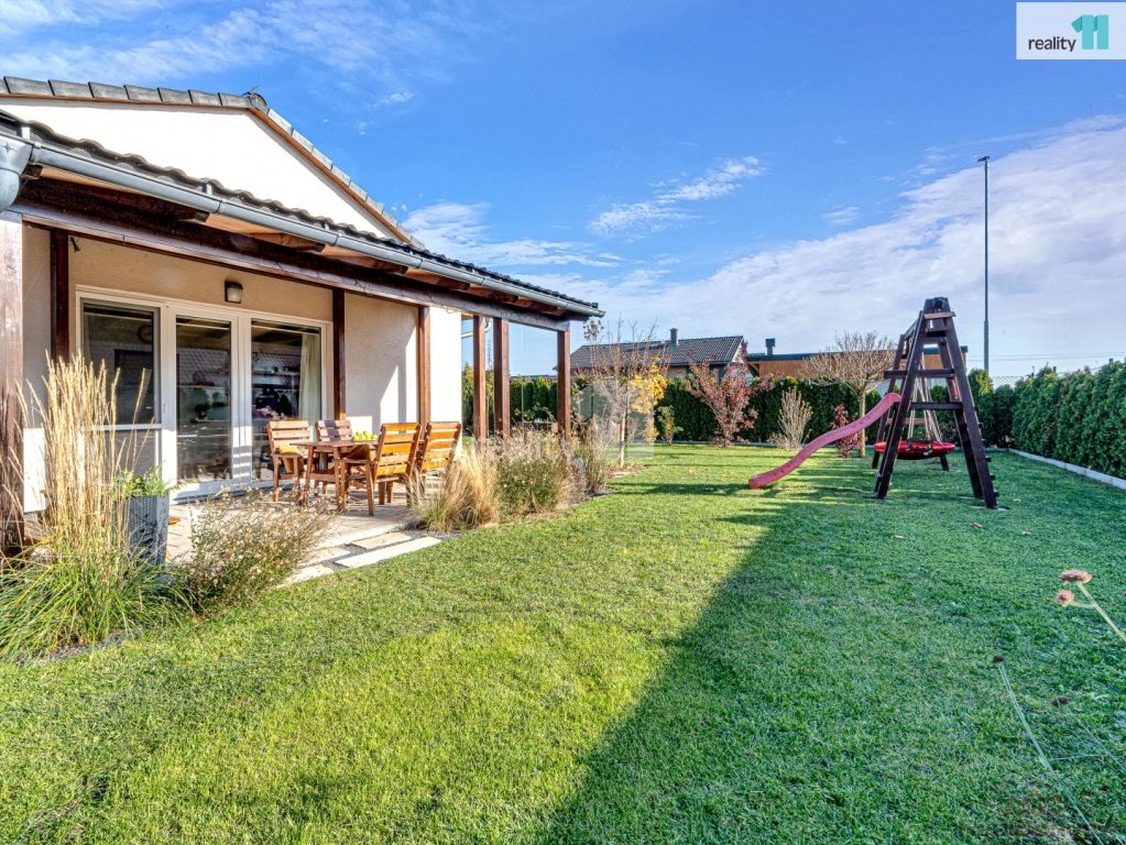 Dům byl zkolaudován v roce 2017 a působí velmi udržovaným a příjemným dojmem. Celková plocha domu činí 98 m, z toho čistá obytná plocha je 78 m a dalších 20 m tvoří zastřešená terasa, která plynule navazuje na obývací pokoj a v létě se stává jeho přirozeným prodloužením. Celková plocha pozemku je 500 m.