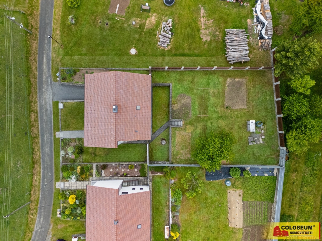 Dispozičně je dům velmi prostorný a vhodný jak pro vícečlennou rodinu, tak pro uživatele s vysokými nároky na prostor. Nabízí dva samostatné byty o dispozici 4+kk a celkové užitné ploše 91,7 m2 každý. V přízemí se nachází obývací pokoj, ložnice, dětský pokoj, jídelna, kuchyně, koupelna a samostatné WC. První patro, do kterého vede samostatné dřevěné schodiště, je dispozičně shodné s přízemím. Dům je celý podsklepen ? v suterénu se nachází garáž, kotelna, prádelna a čtyři technické místnosti. Pod sedlovou střechou je k dispozici rozsáhlý půdní prostor, který nabízí další možnosti využití.