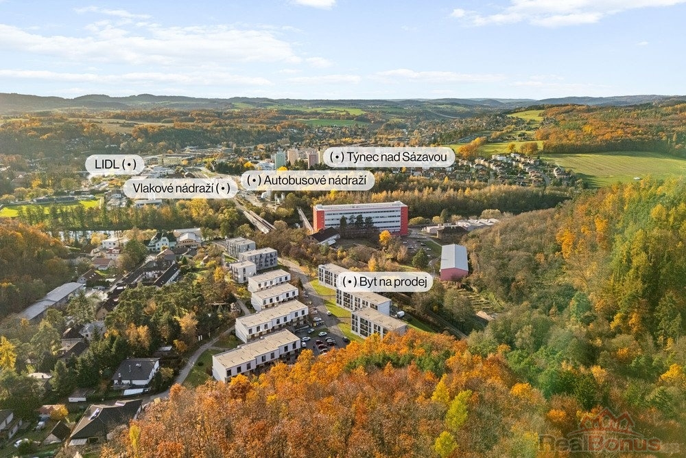 Komfortní bydlení v klidné lokalitě Týnce nad Sázavou ? byt 1+1, 41,5 m2, lodžie, sklep, možnost krytého parkovacího stání.