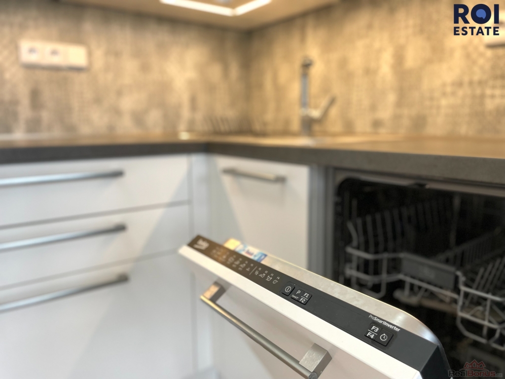 Součástí bytu je nová kuchyňská linka se všemi spotřebiči jako varná deska, digestoř, trouba, lednice, myčka a mikrovlnná trouba. V koupelně je nadstandardní sprchový kout, WC, topný žebřík, umyvadlo a pračka.