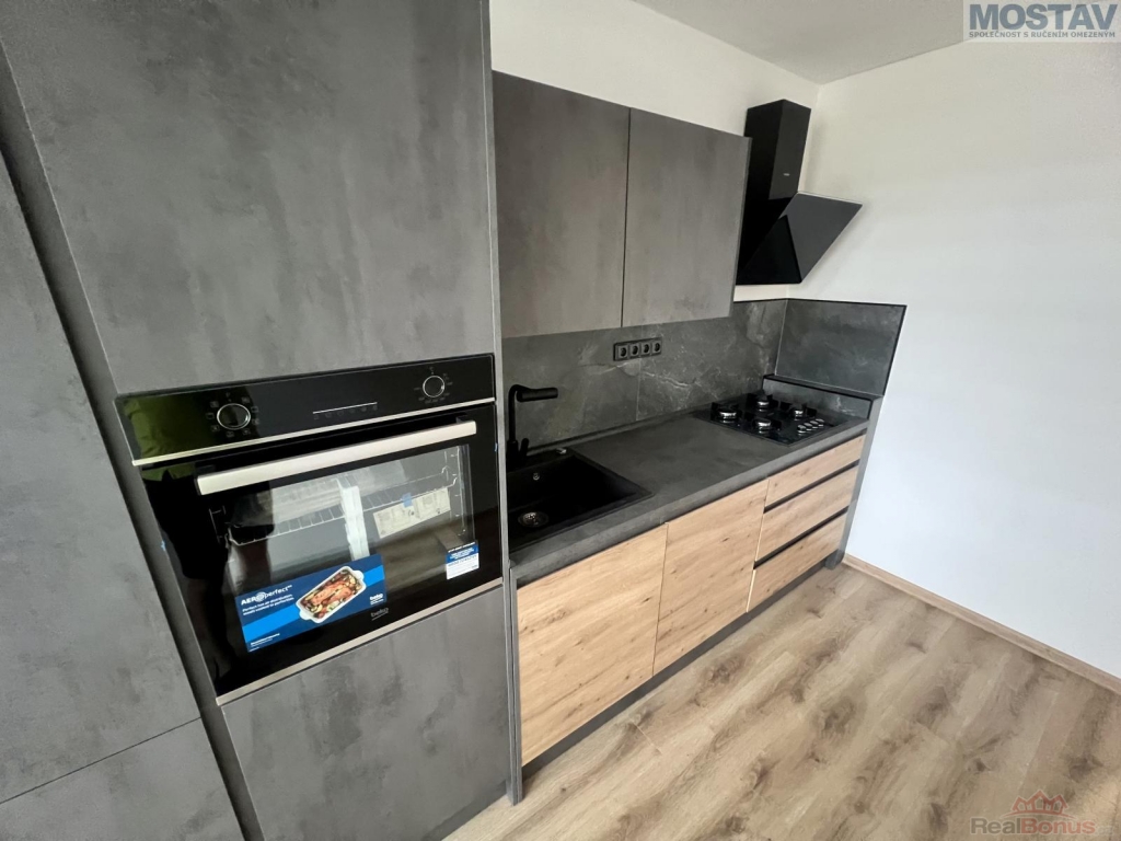 Součástí bytu je praktická zasklená lodžie, sklepní kóje a venkovní komora, které výrazně rozšiřují úložné možnosti. Kuchyňská linka je vybavena vestavěnými spotřebiči troubou, varnou deskou i myčkou.